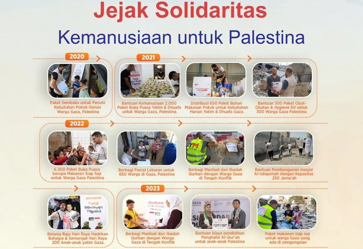 Sejak tahun 2020 hingga 2025, Yatim Mandiri terus menghadirkan aksi nyata kemanusiaan untuk masyarakat Palestina, khususnya di Gaza. Di tengah konflik dan krisis yang berkepanjangan, bantuan demi bantuan telah disalurkan sebagai bentuk kepedulian dan solidaritas umat.