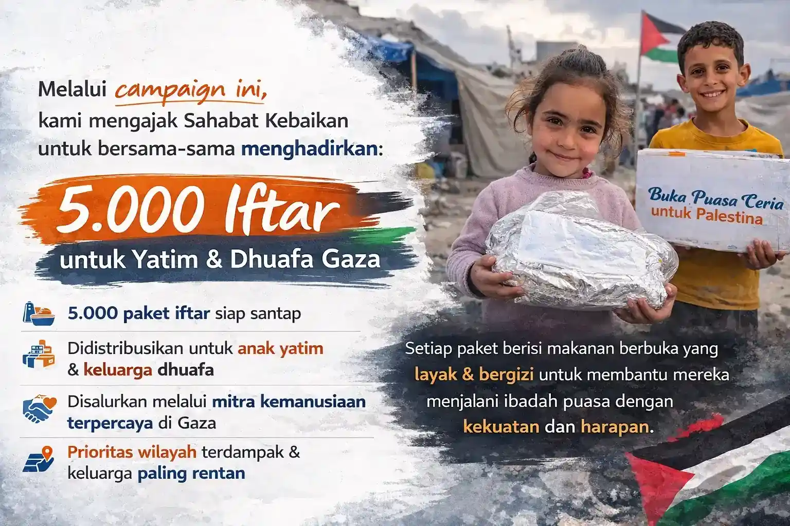 Ramadhan adalah bulan berbagi. Namun bagi ribuan anak yatim dan keluarga dhuafa di Gaza, Ramadhan datang di tengah luka, kehilangan, dan kelaparan.
